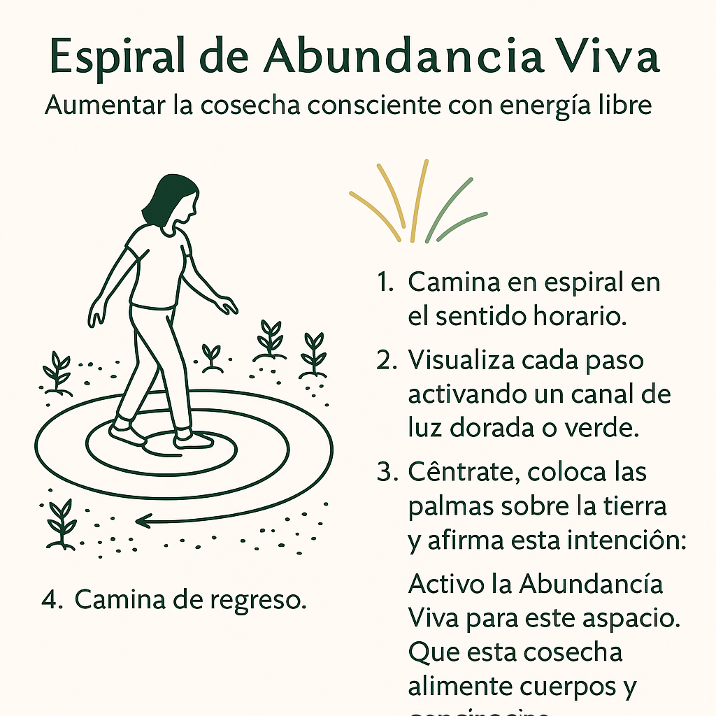 Nombre de la herramienta: «Espiral de Abundancia Viva» ✨ ¿Qué es esta herramienta? La Espiral de Abundancia Viva es una técnica energética sencillaque permite incrementar la productividad de un cultivoal aplicar conscientemente vibración de expansión y colaboración con la Tierra. No se trata de fertilizantes ni mejoras mecánicas,sino de un reposicionamiento vibracional del cultivopara que […]